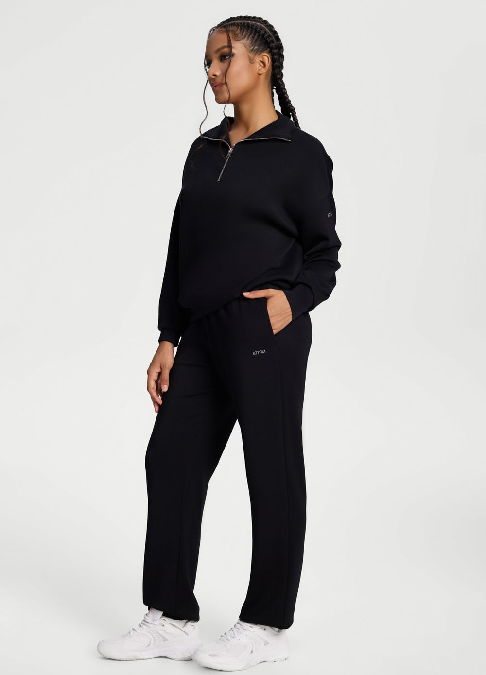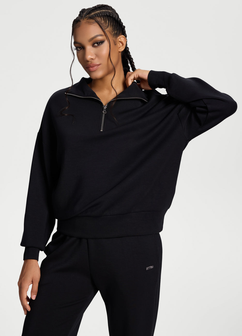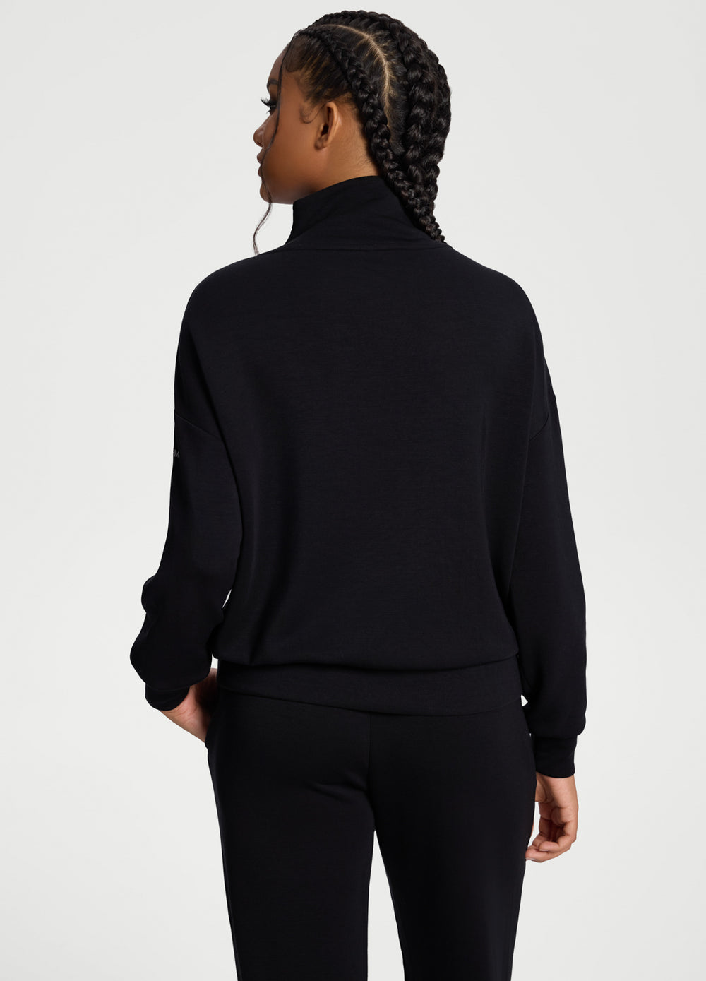 Tu prenda más suave con un acabado estructurado. Confeccionada con un tejido ultraliviano y suave como la seda, con una silueta relajada y ligeramente cuadrada, y hombros caídos. El cuello alto y el detalle de la cremallera impecable le dan a esta sudadera con media cremallera un toque elegante y relajado: fácil de combinar y fácil de usar.