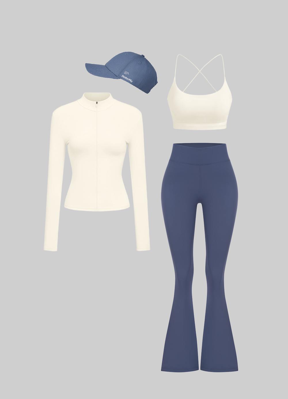 From yoga flows to on-the-go, this matching set is ready for your every move. Flattering flared leggings, a lightweight jacket, and simple strapback cap make this set a go-to for busy days, chill weekends, and everything in between.