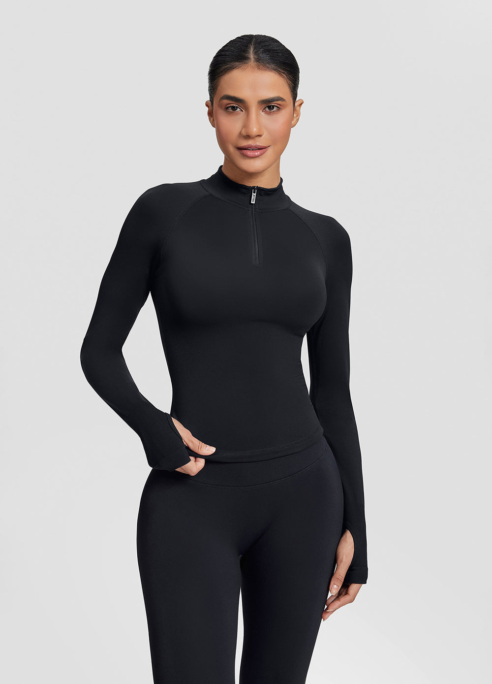 Top Ultrasculpt largo de sarga, ajustado, sin costuras, con abertura para el pulgar y media cremallera