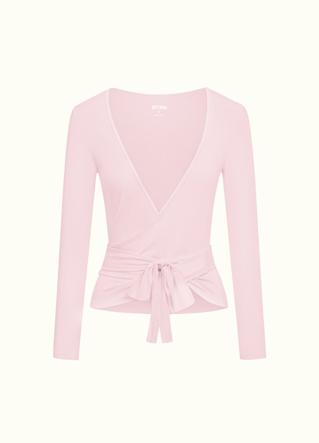 - Wrap Top: Sculpting shape, waist-length cut, adjustable tie