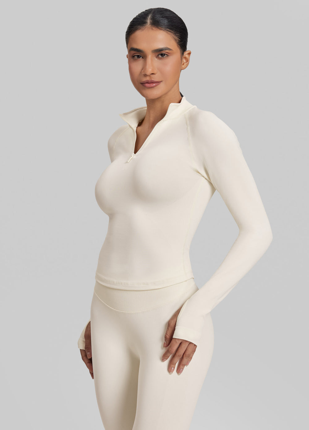 Ultrasculpt Longline Form-Fitting Seamless Thumb Hole Twill Knit Half-Zip Top