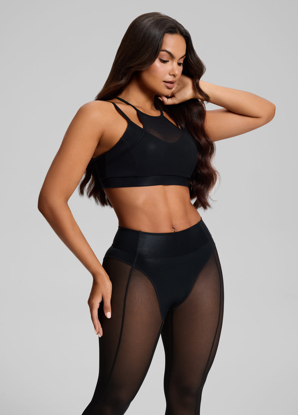 Des lignes puissantes. Un style soigné. Ce haut Sculpt à col ras affiche une coupe glossy, avec son décolleté en maille respirante et son dos à bretelles. Un vêtement fait pour bouger et attirer tous les regards.