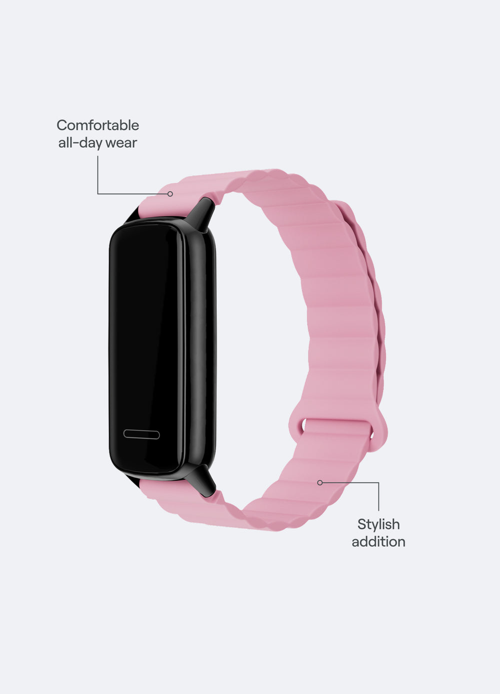 Rinfresca il look della tua BetterMe Fitness Tracker con un cinturino elegante! Un vero pezzo alla moda, realizzato per adattarsi alla tua estetica e al tuo polso.