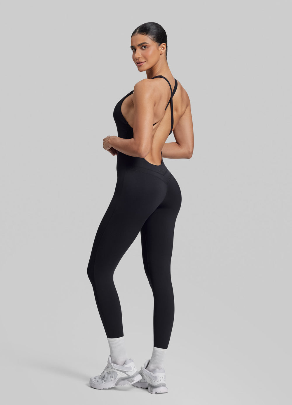 Form-Fitting Full Length Crossback Built-in Bra Sweat-Wicking Bodysuit