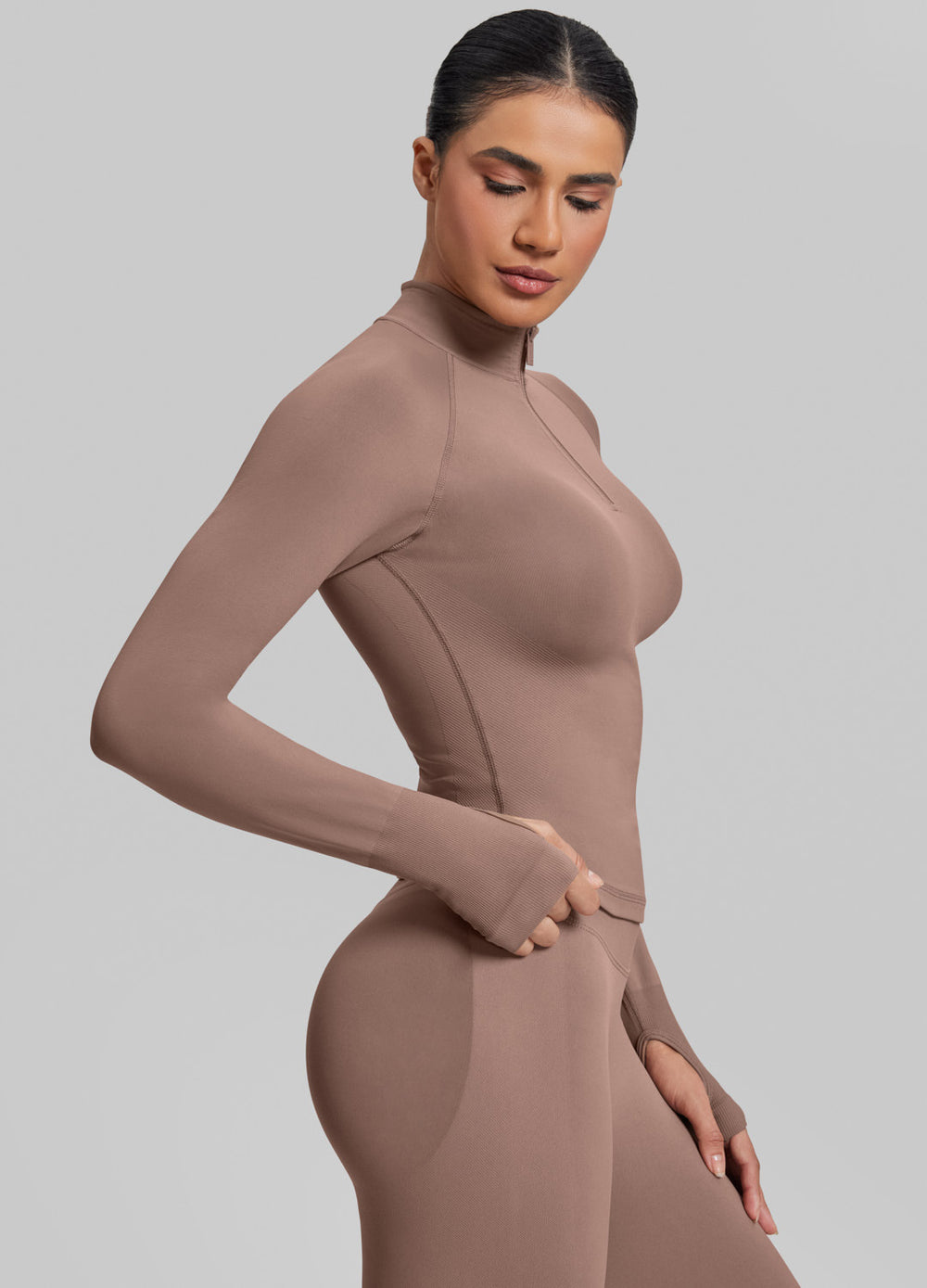 Ultrasculpt Longline Form-Fitting Seamless Thumb Hole Twill Knit Half-Zip Top