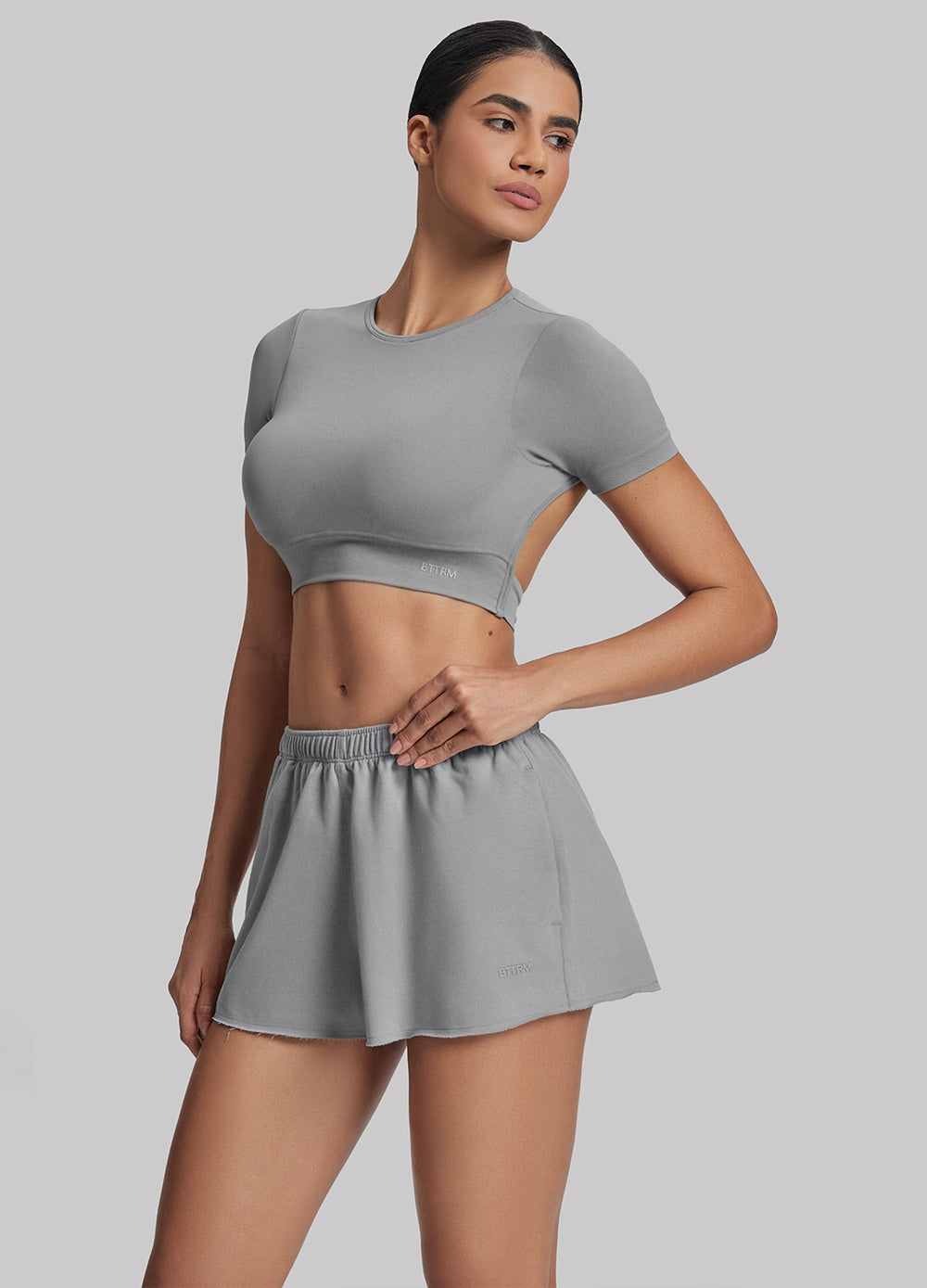 Ultrasculpt Crew Neckline Backless Removable Bra Cups Seamless Crop Top