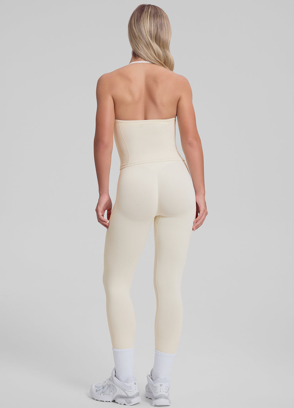Ultrasculpt Longline Halterneck Form-Fitting Built-in Bra Twill Knit Tank Top