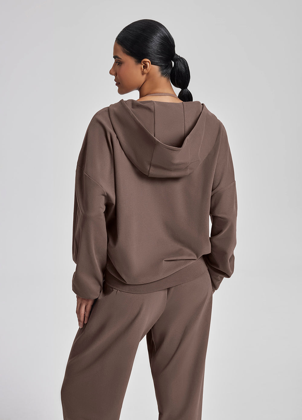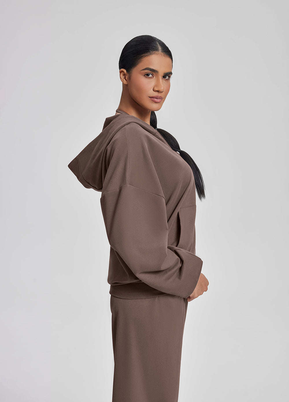 This oversized hoodie wraps you in soft, calming comfort whenever you need it. Made with our lightest lounge fabric, it drapes beautifully without clinging. Perfect for relaxed walks, slow weekends and any moment you want to feel held.
