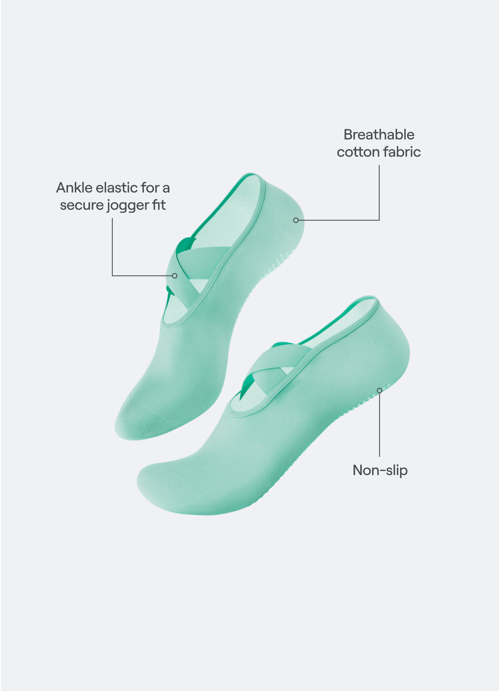 Feitas de um material respirável e confortável, as meias de aderência para pilates oferecem um recurso de faixa na parte superior do pé para manter tudo no lugar. A aderência antiderrapante na parte inferior das meias o ajudará a manter todas as posturas com facilidade, além de garantir segurança e estabilidade. Além disso, a capacidade antibacteriana e de absorção de umidade faz com que essas meias sejam perfeitas para a sua próxima sessão de pilates.