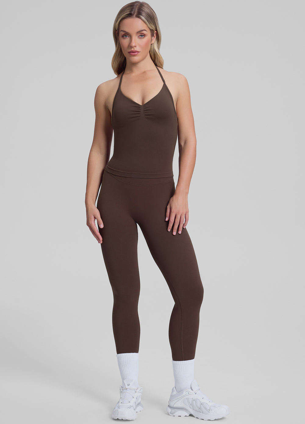 Ultrasculpt Longline Halterneck Form-Fitting Built-in Bra Twill Knit Tank Top