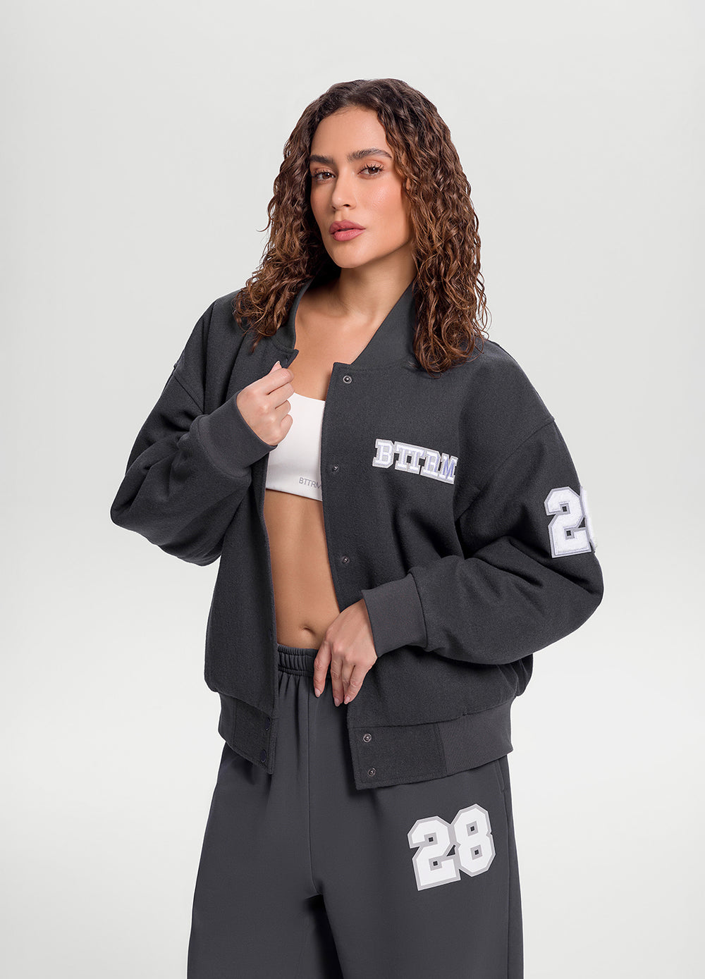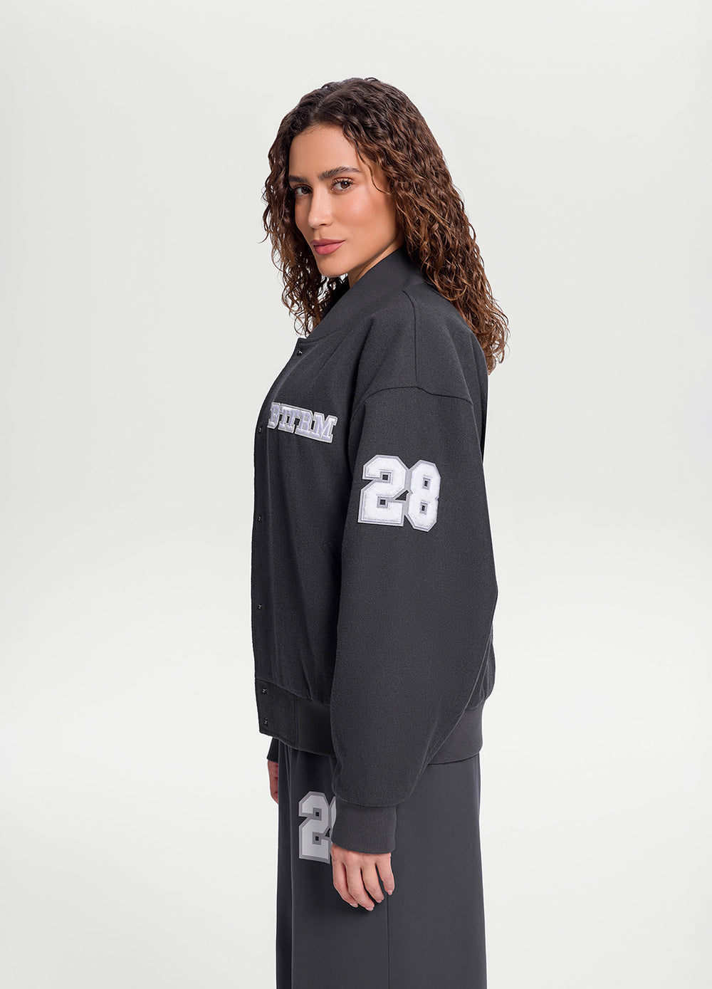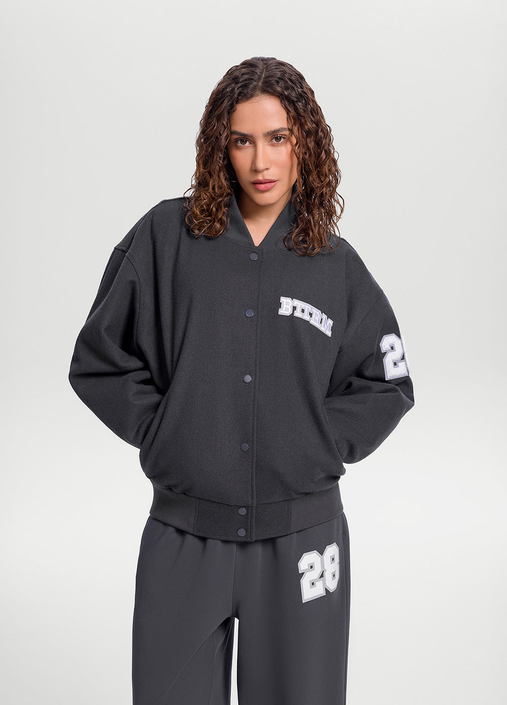 Оверсайз-куртка у вуличному стилі. Тепла вовняна тканина, м’яка підкладка та зручні застібки-кнопки — все для спортивного й водночас розслабленого образу.