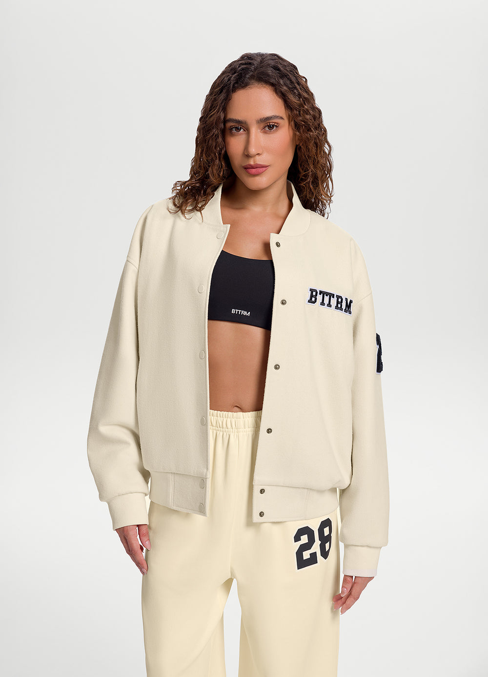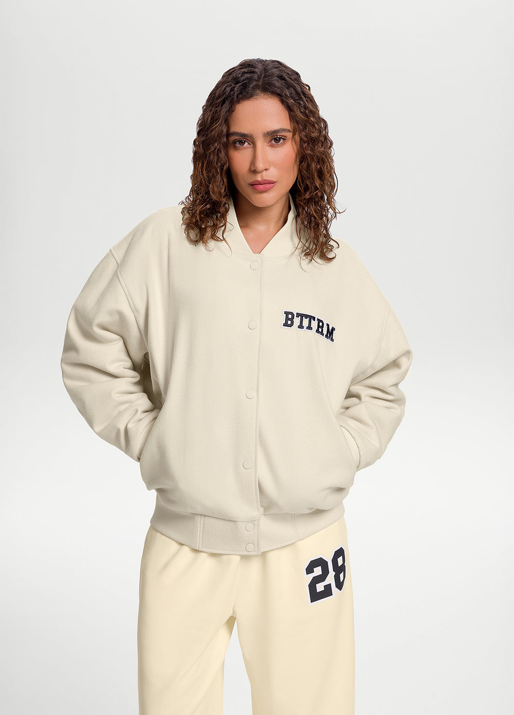 Оверсайз-куртка у вуличному стилі. Тепла вовняна тканина, м’яка підкладка та зручні застібки-кнопки — все для спортивного й водночас розслабленого образу.