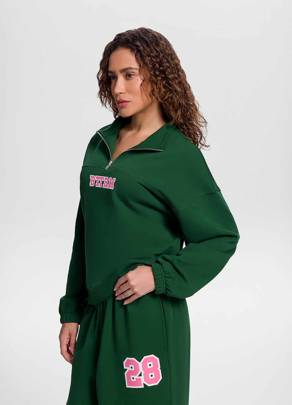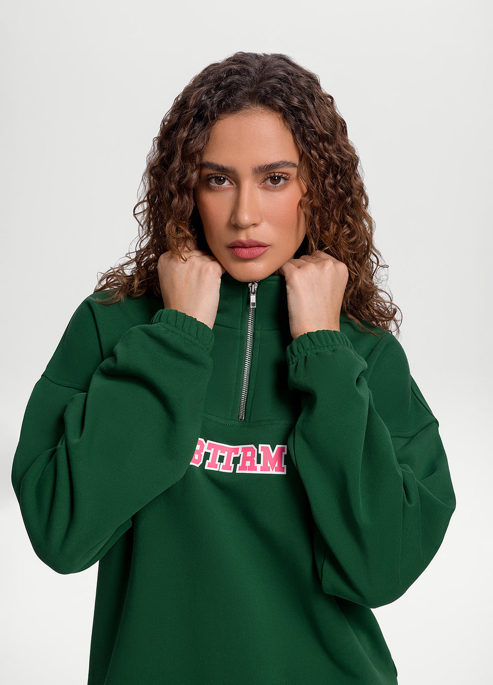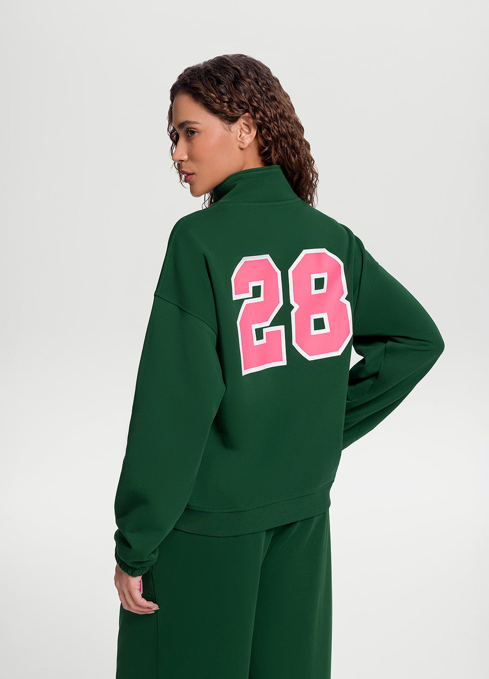 Цей світшот оверсайз поєднує щоденний комфорт з університетським стилем. 100% м'яка бавовна, застібка-блискавка спереду та виразні графічні елементи, що привертають увагу.