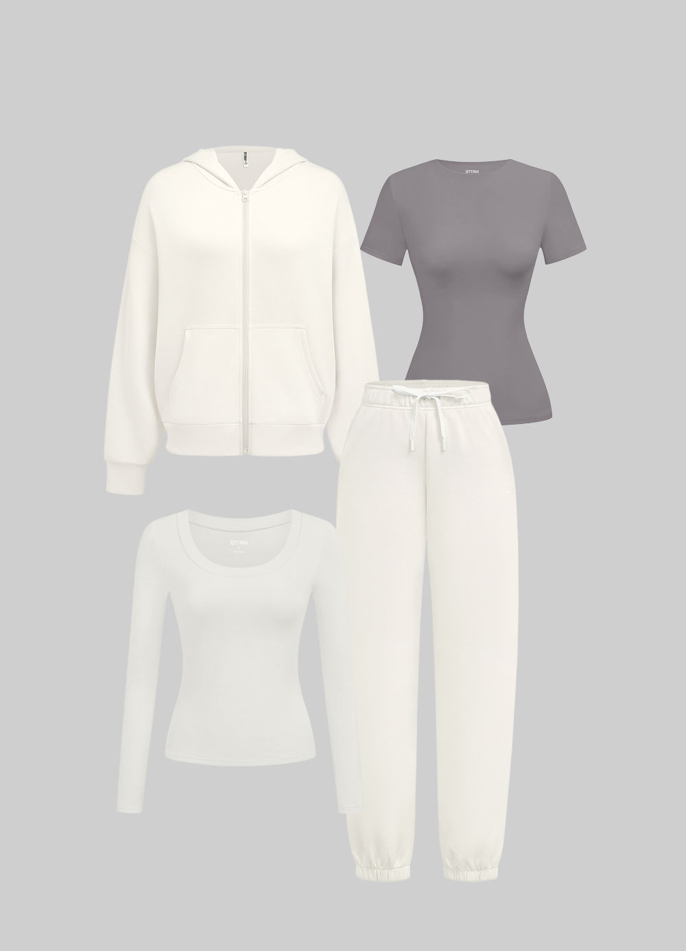 Cozy vibes only: wrap up in four versatile pieces that feel as good as they look. Seamless fits, soft fabrics—and they’re easy to style? Add to cart, please.