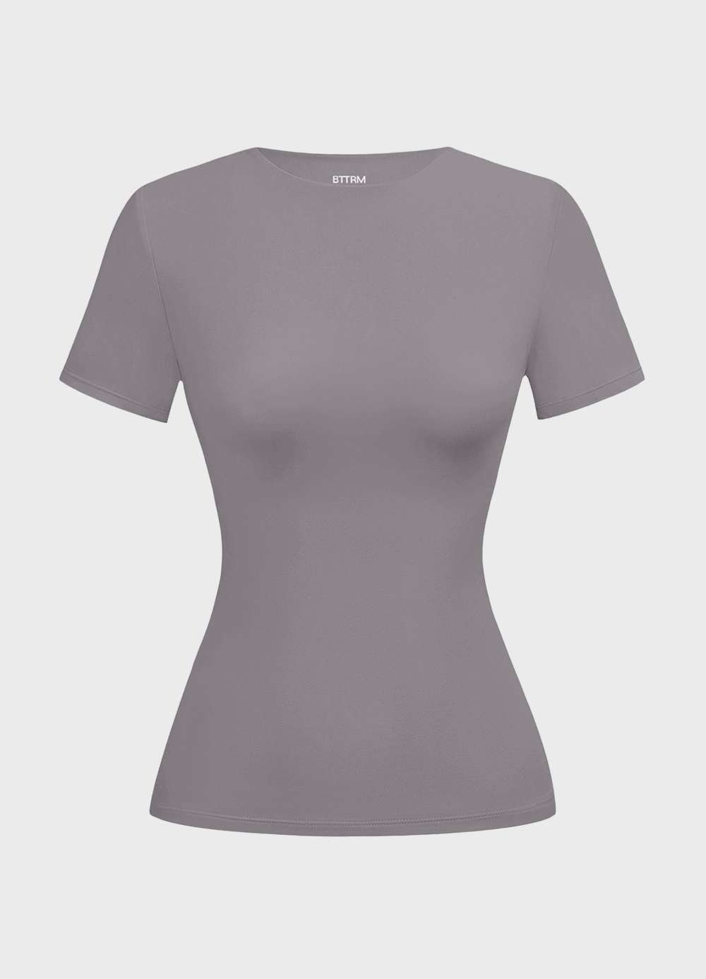 - Short Sleeved Top: Soft fabric, crew neck silhouette