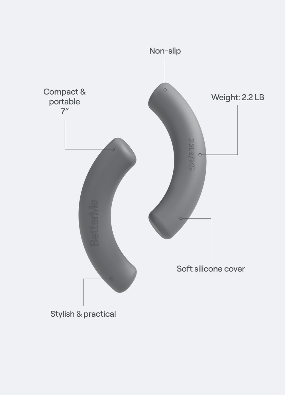 Хочете урізноманітнити свої заняття? Ось ваш новий мастхев – ідеальне поєднання вишуканості та практичності. Цей маленький, але потужний інструмент додасть комфорту, контролю та стилю вашим тренуванням. Завдяки компактному розміру, вишуканому дизайну та м’якому матеріалу будь-які тренування – від пілатесу до силової ходьби – будуть легкими й невимушеними. Завжди в дорозі? Без проблем. Гантелі створені для активних людей і підходять для подорожей. Завжди беріть їх із собою та займайтеся де й коли завгодно.