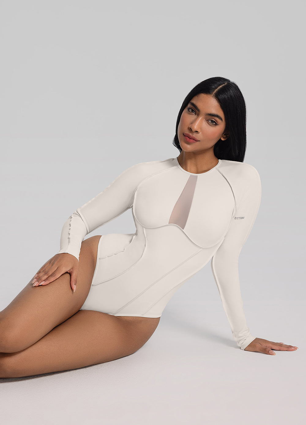Ніжна сітчаста вставка, довгі рукави та чіткий силует роблять цей топ справжньою родзинкою образу. Ідеальна річ, що ефектно доповнить легінси та стане улюбленою у вашому гардеробі. Мінімалізм і звабливість в одному наборі.